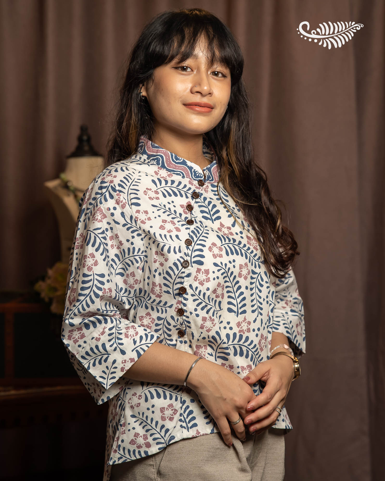 Introducing the Mandarin Collar Blouse where every piece is meticulously crafted with attention to detail. The Blouse is designed to elevate your everyday look with effortless style.